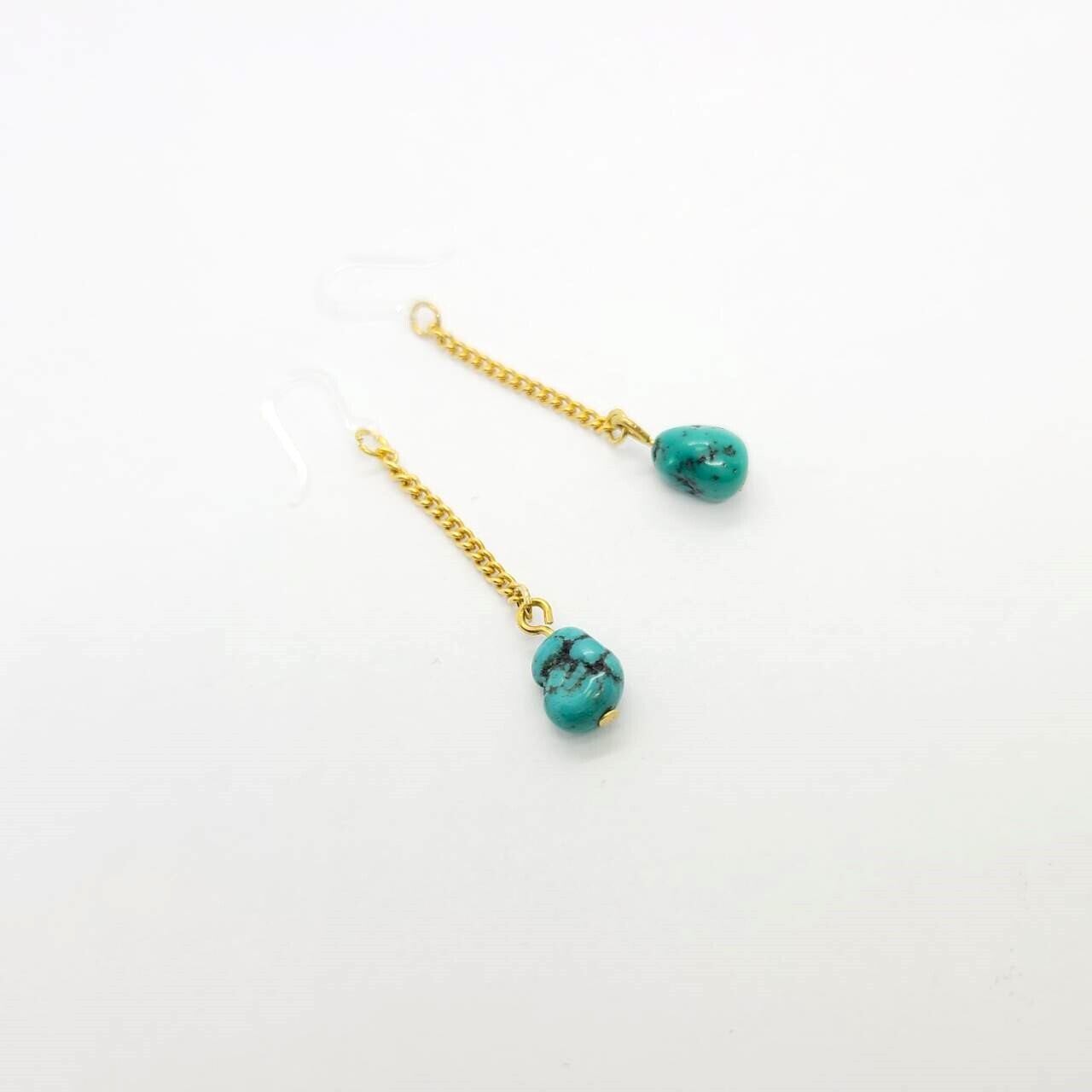 ターコイズ トルコ石 ピアス ハンドメイド パワーストーン 天然石 樹脂パーツ フック