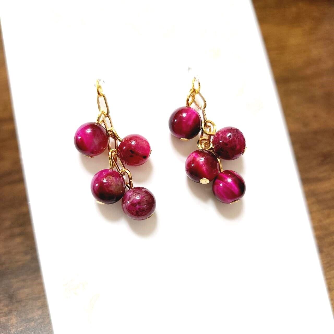 美しいピンクタイガーアイの天然石を使用した、ゴージャスな6ミリピアスです。