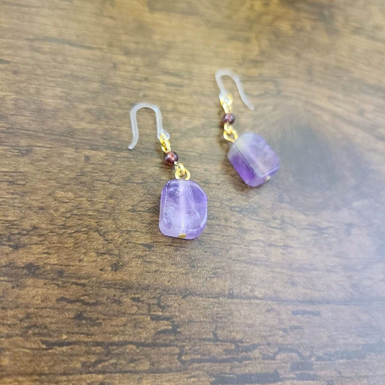 アメジスト ラフタンブル + ガーネット ピアス 1点物 パワーストーン ハンドメイド 天然石 魔除け 安眠