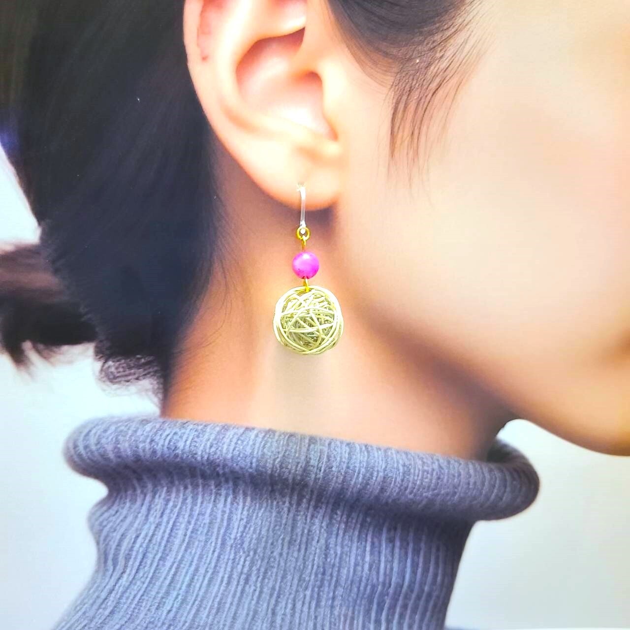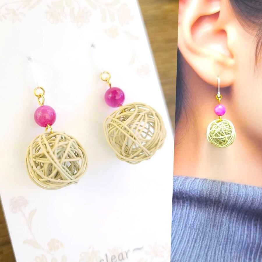 ピンクタイガーアイ6ミリ+ワイヤーボール ピアス ハンドメイド パワーストーン 天然石 樹脂パーツ フックピアス